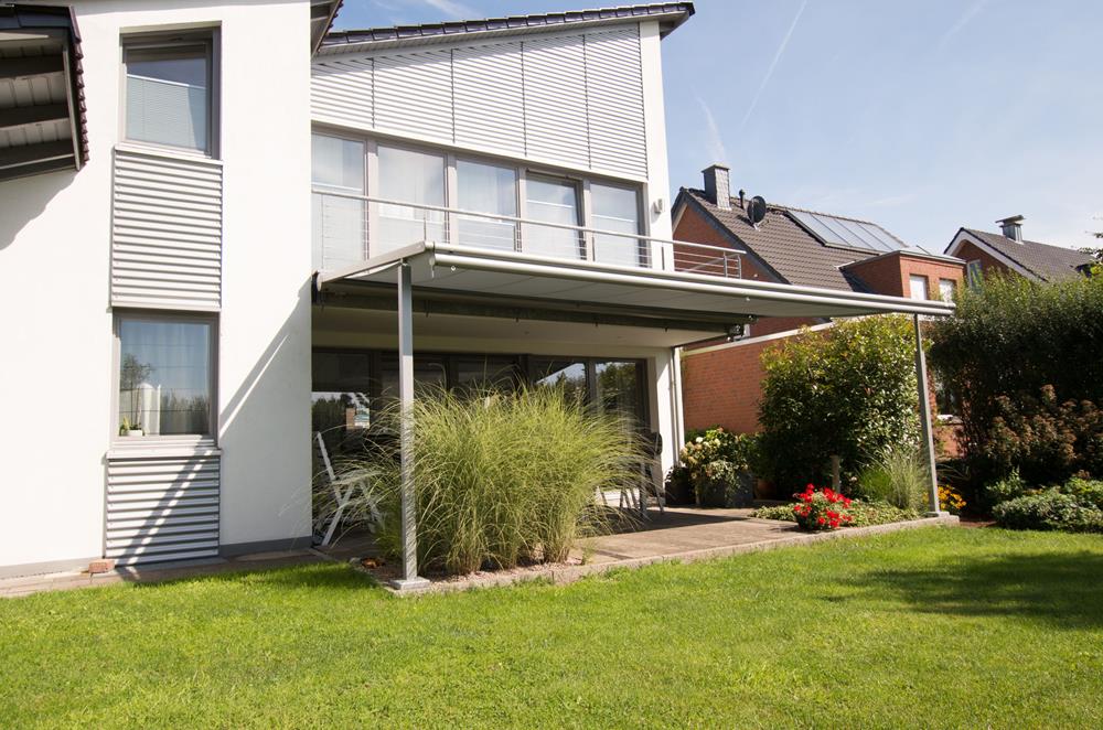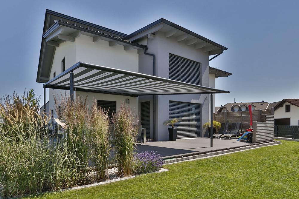 Les pergolas bioclimatiques s'adaptent aux conditions météorologiques. Par beau temps, les lamelles du toit peuvent être ouvertes, afin de chauffer l'intérieur de la pergola ou de permettre à l'air de circuler. En cas de mauvais temps, le toit peut être fermé. Avec une telle pergola, vous profiterez de votre jardin tout au long de l'année.